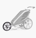 Transforming your X-Country Series Chariot into a fully-functional jogging stroller is simple using Chariot's Jogging CTS Kit. The long, stable wheel base, low center of gravity, open or enclosed child compartment, spacious leg room for the runner, and optimal weight distribution make this a formidable jogging stroller indeed. Includes wheel arms, 16" air-filled wheel w/molded plastic mags, storage bag (to transport CTS kits in when not in use), and foot-operated parking brake mechanism. (CX Kits come with Deluxe 16" wheels to match the CX's black and red wheels.)
