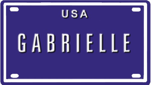 Gabrielle USA mini metal embossed license plate name for bikes, tricycles, wagons, kid doors, golf carts, baby strollers, pedal cars. Over 400 names available. Type in "name" usa plate in search. Your name will show up. Feature